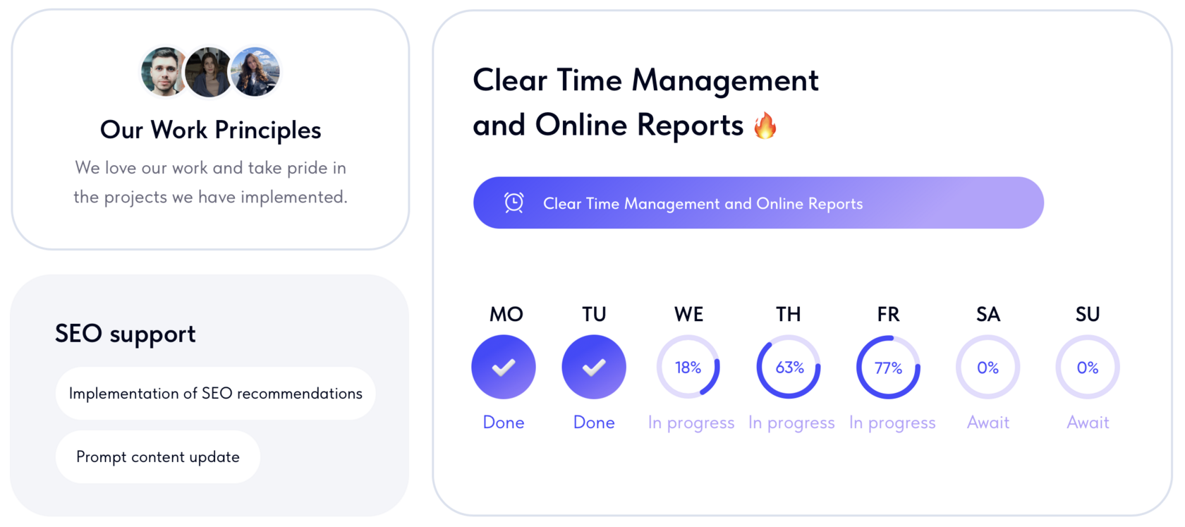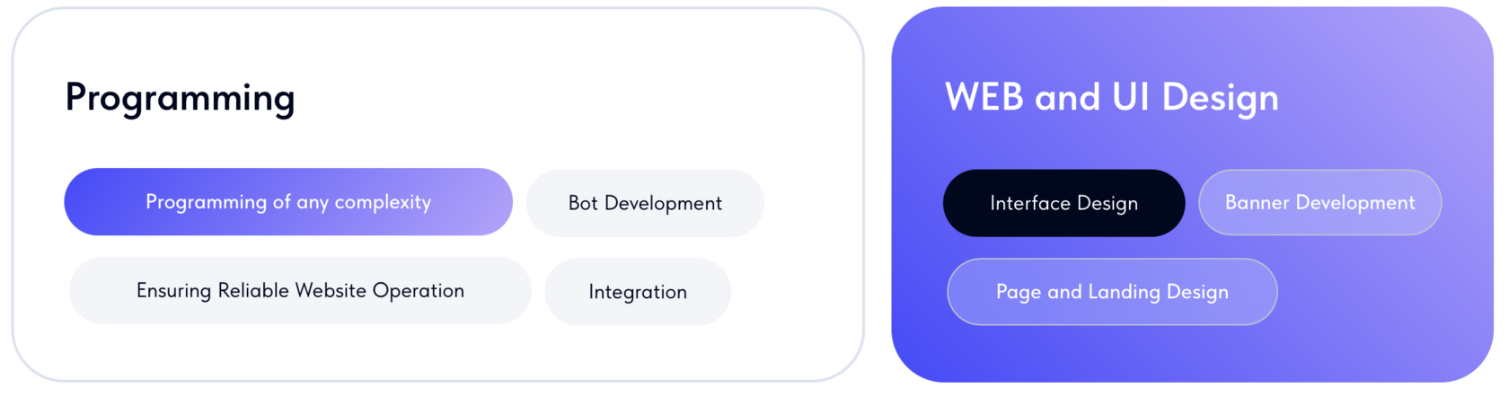 From adding a banner to a website to developing and implementing complex technical solutions. We promptly implement updates, ensure uninterrupted website operation, and integrate services according to your goals.